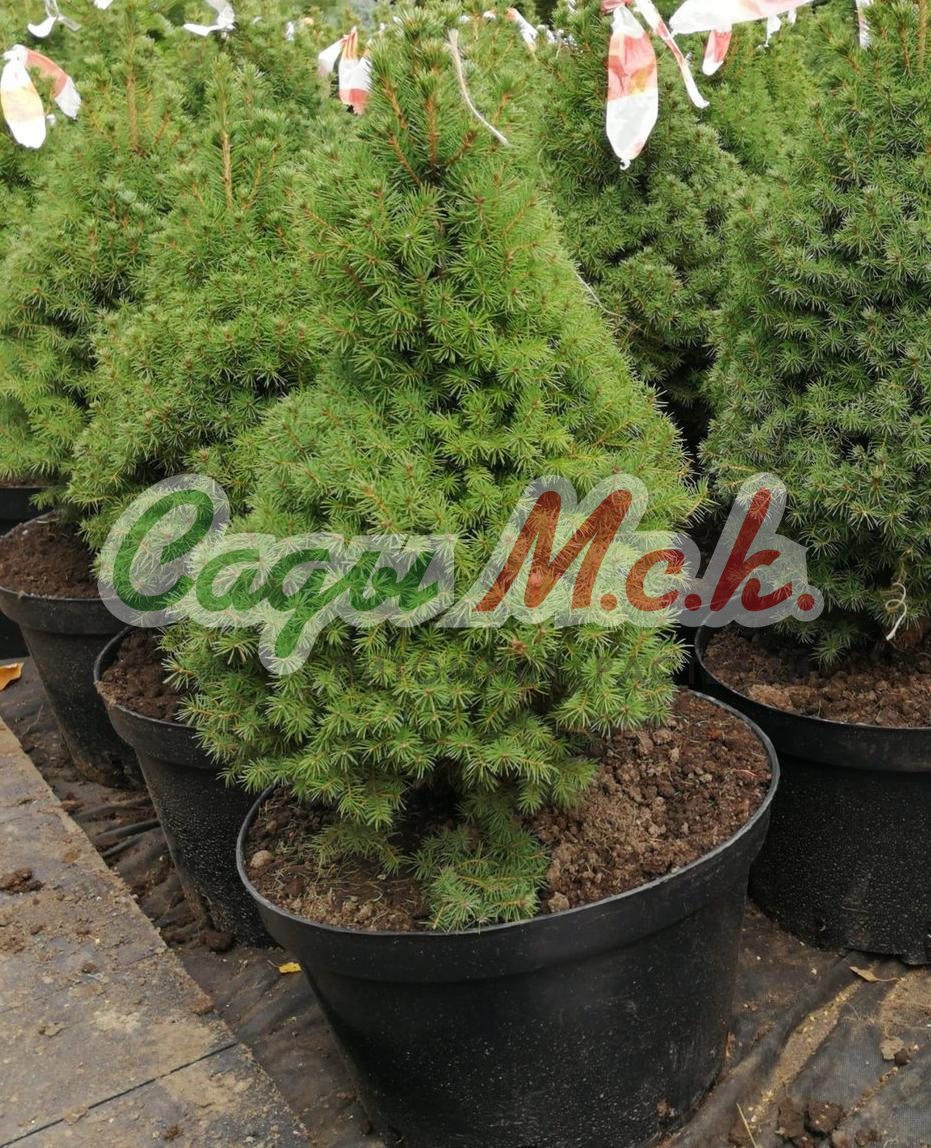 Ель конической формы. Ранее относилась к Picea orientalis. Высота к 10-ти годам 5 м и ширина 1 м, затем дорастает до высоты 10 м и ширины 2 м. Молодой весенний прирост кремово-жёлтый. Хвоя имеет жёлтые отблески. Место солнечное. Почва влажная дренированная. Зона 3 (до -34ºС).